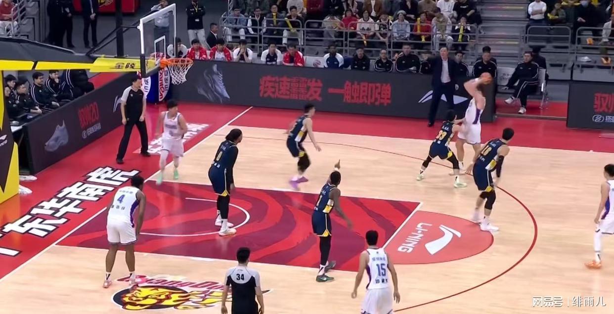 而广东队在比分上一度被反超,替补徐杰出场的国青队后卫杨溢几乎被完全打爆。天津队身高仅1米81的小后卫谷泽浴全场打满40分钟,在进攻端19中8一人独揽23分12助攻5篮板的全面数据。要知道,谷泽浴本赛季的场均数据只有场均4.9分3.3次助攻。毫无疑问,现阶段的广东队在一号位上只有徐杰能扛大旗。杨溢虽然具备很强的冲击力,但是防守端被谷泽浴连续点名单打,进攻端没有三分球投射能力也放空。甚至有球迷认为,杨溢在场时广东队几乎是4打5的局面。